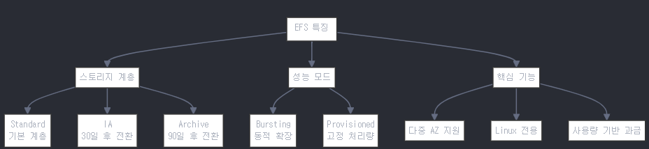 - 네트워크 파일 시스템(NFS) 기반으로 EC2 인스턴스에 마운트 가능.